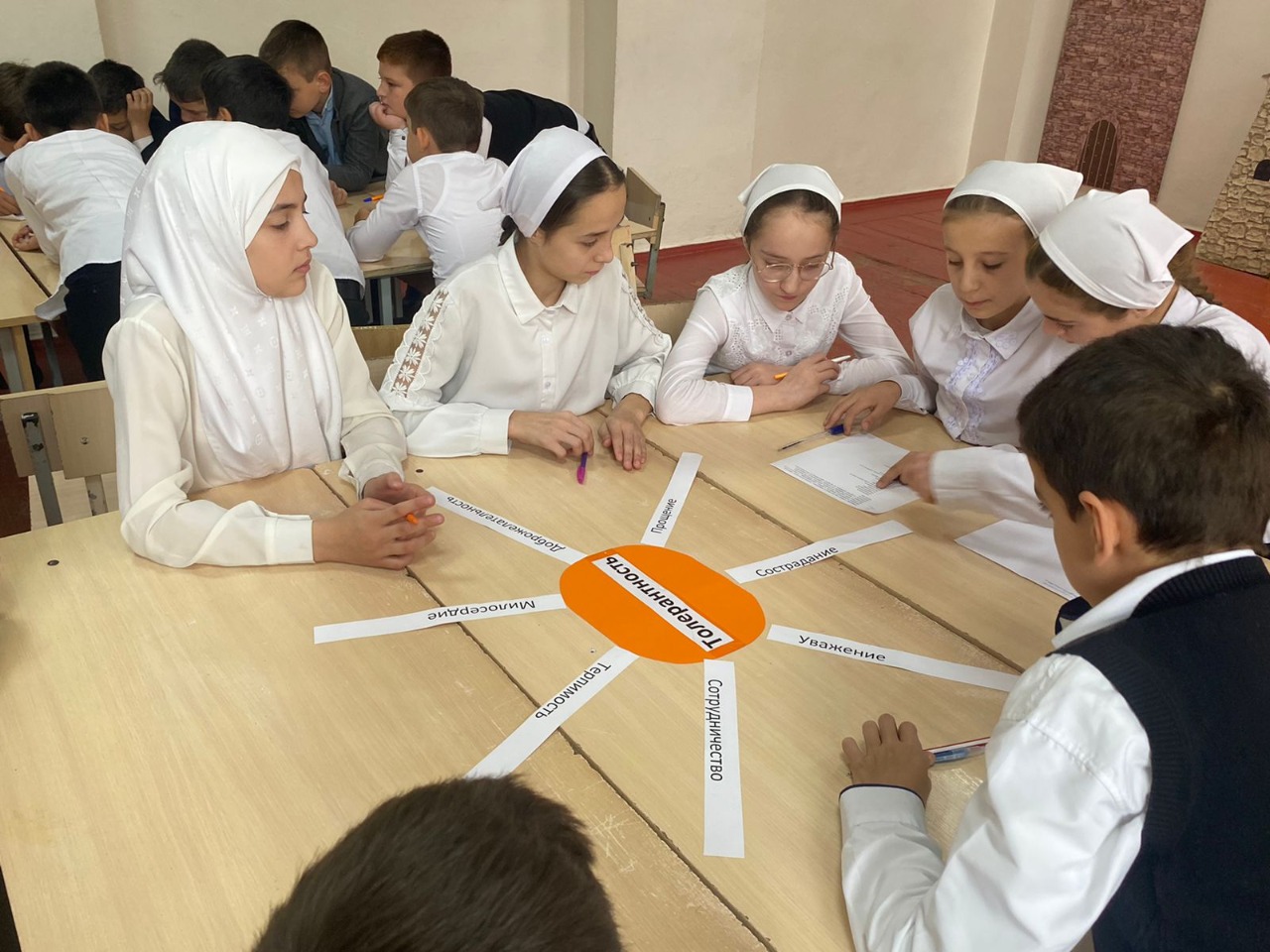 15.11.2022Международный день толерантности отмечается ежегодно 16 ноября. В преддверии праздника в МБОУ «СОШ№1 с.Чечен-Аул» городского округа г.Аргун прошли классные часы и уроки Доброты. На этих уроках дети познакомились с притчей о доброте и взаимопонимании, на которых строятся отношения в семье и коллективе, историей возникновения самого праздника. В ходе беседы ребята давали разные определения слову толерантность, но все они были объединены общим смыслом взаимоотношений, строящихся на терпимости и уважении друг к другу. В занимательной и игровой форме дети обсуждали вполне взрослые проблемы: уважение друг к другу, обычаи и традиции разных народов, милосердие, доброта и т.д.