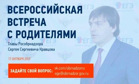 06.10.201717 октября руководитель Федеральной службы по надзору в сфере образования и науки Сергей Кравцов проведет Всероссийскую встречу с родителями.
