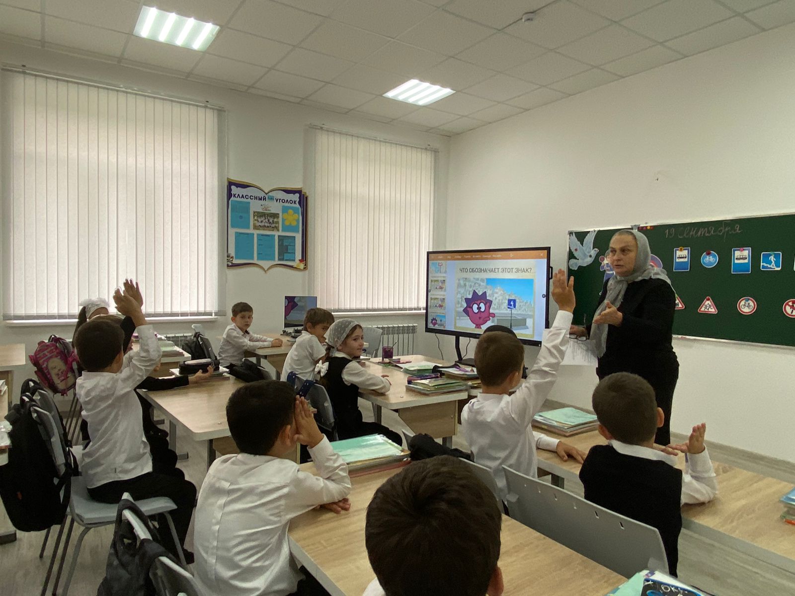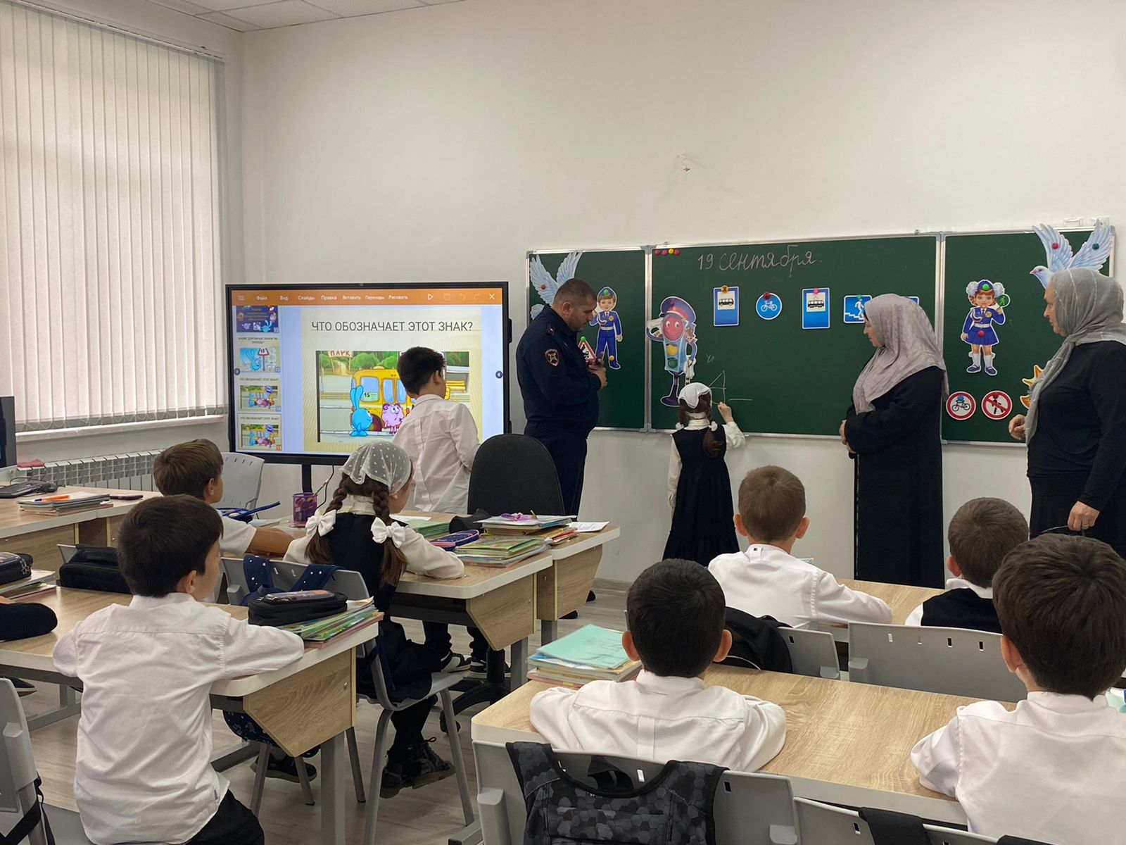 Сегодня, в рамках профилактической недели безопасности дорожного движения, в МБОУ «СОШ 1 с. Чечен-Аул» Солтамурадова К. Д . провела беседу в 1 «А» классе, вместе с инспектором ОГИБДД ОМВД России по городу Аргун,капитан полиции Мантиев Х.Х.,